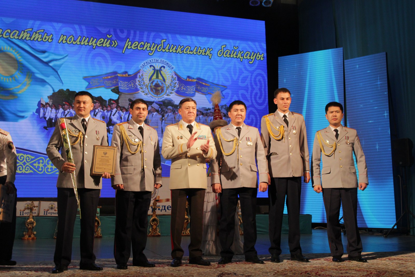Қазылар алқасының шешімі бойынша Ішкі істер органдары қызметкерлері арасында өткізілген "Парасатты полицей" республикалық байқауында «Ұйымшыл команда» номинациясына ие болған Ақтөбе облысы Ішкі істер департаментінің «Серт береміз!» командасы марапатталды.